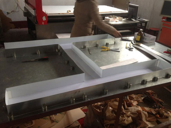 • We recommend you make a workbench with iron plates for making letter signs. You had better choose 3mm iron plates as your material, for the magnetic force of these super strong magnets can be fully used this way, and it will be more convenient to make letter signs.
