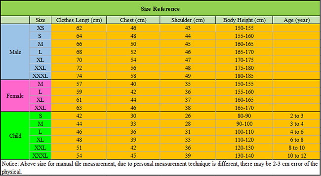 Size Table / ตารางขนาด บริเวณส่วนต่างๆของ เสื้อยืด สำหรับ บุรุพ ,สุภาพสตรี รวมถึงเด็ก