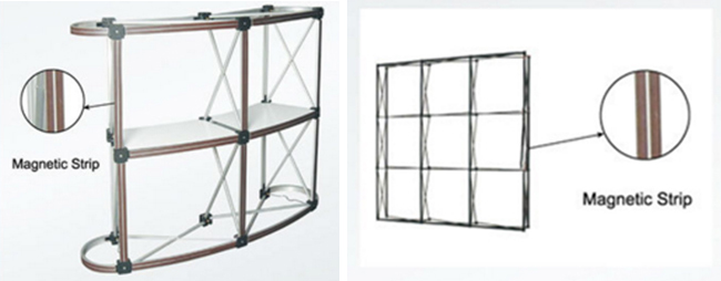 • Self-adhesive magnetic strips are attached on the pop-up exhibition stands, truss display system and portable exhibition stands, through using magnetic strips, you can convert non-magnetic visuals into movable magnetic displays.