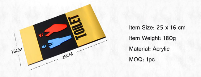 สินค้าป้ายห้องน้ำชาย,หญิงนี้ ผลิตขึ้นจากวัสดุอะคริลิค ซึ่งบริเวณด้านหลังของสินค้า ประกอบด้วยแผ่นเทปกาว 3 M โดยการใช้งานเพียงแค่ลอกแผ่นกระดาษกาวที่ด้านหลังของป้ายออก จากนั้นสามารถนำไปติดที่บริเวณจุดต่างๆของประตูห้องน้ำได้ตามความต้องการ