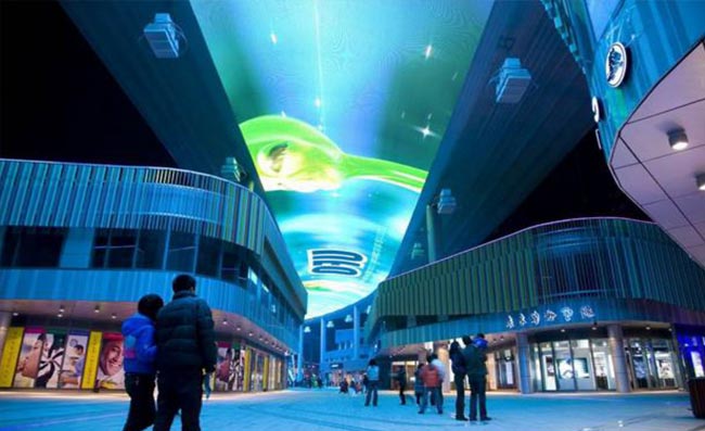 ม่านผนังกระจกเพิ่มช่องว่่างการมองเห็นที่ดีภายในอาคาร, เช่น ร้านหลายสาขา, ห้างสรรพสินค้า, ศูนย์นิทรรศการ, สนามบิน, สถานีรถไฟใต้ดิน, ร้านรถยนต์ 4S, ร้านอัญมณี ฯลฯ, ธนาคาร และอื่นๆ, ทีทำให้เกิดผลกระทบการมองเห็นที่แข็งแรงและความรู้สึกถึงลำดับชั้นสำหรับ จอ LED โปร่งแสง.