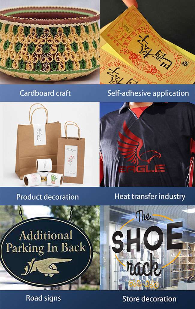 Can cut PET, PVC, cardboard, sticker, film, fibercomposite material, fabric, PU, plastic board, etc.