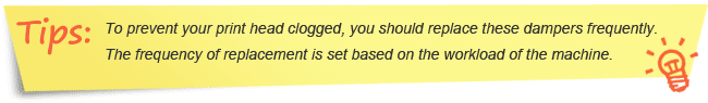 เพื่อป้องกันหัวพิมพ์ไม่ให้เกิดการอุดตัน โปรดเปลี่ยนดัมเปอร์บ่อยๆความถี่ขึ้นอยู่กับปริมาณงานในการใช้เครื่องพิมพ์