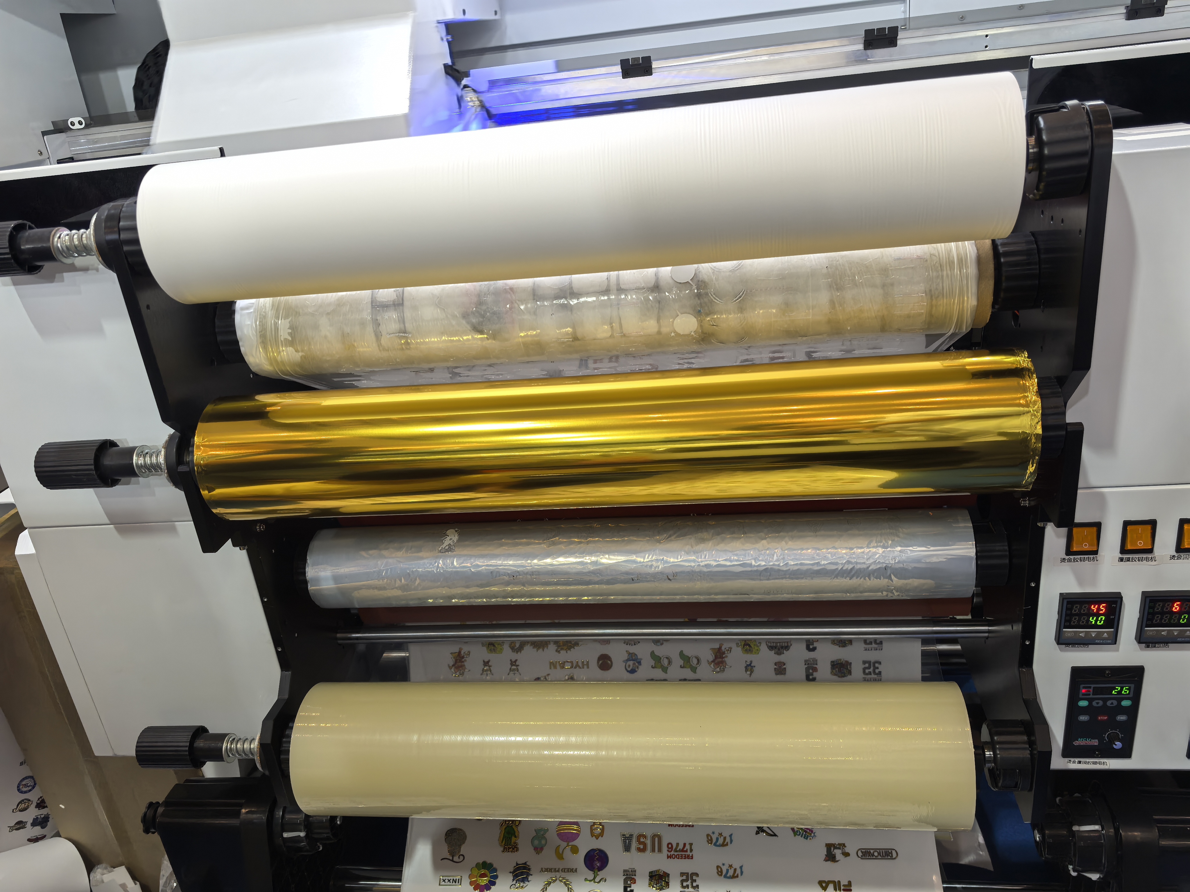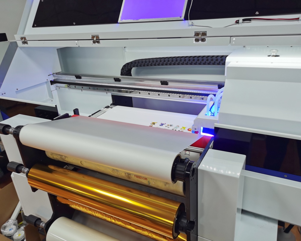 60cm printing size golden film UV DTF machine with lamination all in one,it uses UV technology to create clear and vibrant images that are resistant to fading and scratching.